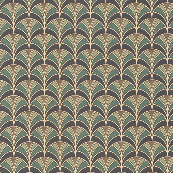 This Italian florentine paper features a crisp, detailed repeat of a fan