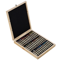 Created in the 1940's in collaboration with Pablo Picasso these creamy, lipstick-like pastels are rich in pigment, cover well, and have outstanding opacity and lightfastness. They may be thinned with turpentine and worked with a brush, are acid-free and can be applied to any surface. They are made with top quality pigments, an extremely pure synthetic binding medium and mineral wax. The pigments are ground with an inert, non-siccative binding medium that does not oxidize, ensuring stability of film and surface. The balance of this mix results in a creamy texture that invites broad strokes and freedom of expression. The high pigment content results in high coloring and covering potential and excellent brightness.