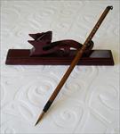 The Jing-Leaf brush provides a very fine point to allow artists to execute precise controlled strokes and thin lines. Ideal for detailed arts and crafts. The diameter of the hair at the ferrule is approximately 3/16 inch. The handle is bamboo and the ferrule and base of the handle are black horn. (BRUSH REST IS NOT INCLUDED!)