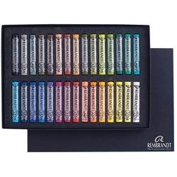 Rembrandt Pastel Sets- Rembrandt pastels are made from the purest pigments mixed with the finest quality kaolin. They are extremely popular among artists of every skill level. They do not fall apart, crumble, or powder as easily as many other brands. Colors are intense and offer optimal lightfastness. No heavy metal pigments are used- no cadmium, lead, or cobalt. Rembrandt pastels have a firm texture, making them ideal for use when a hard line or detail is needed
