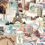 century. The motifs featuring old posters, postcards, musical notes or